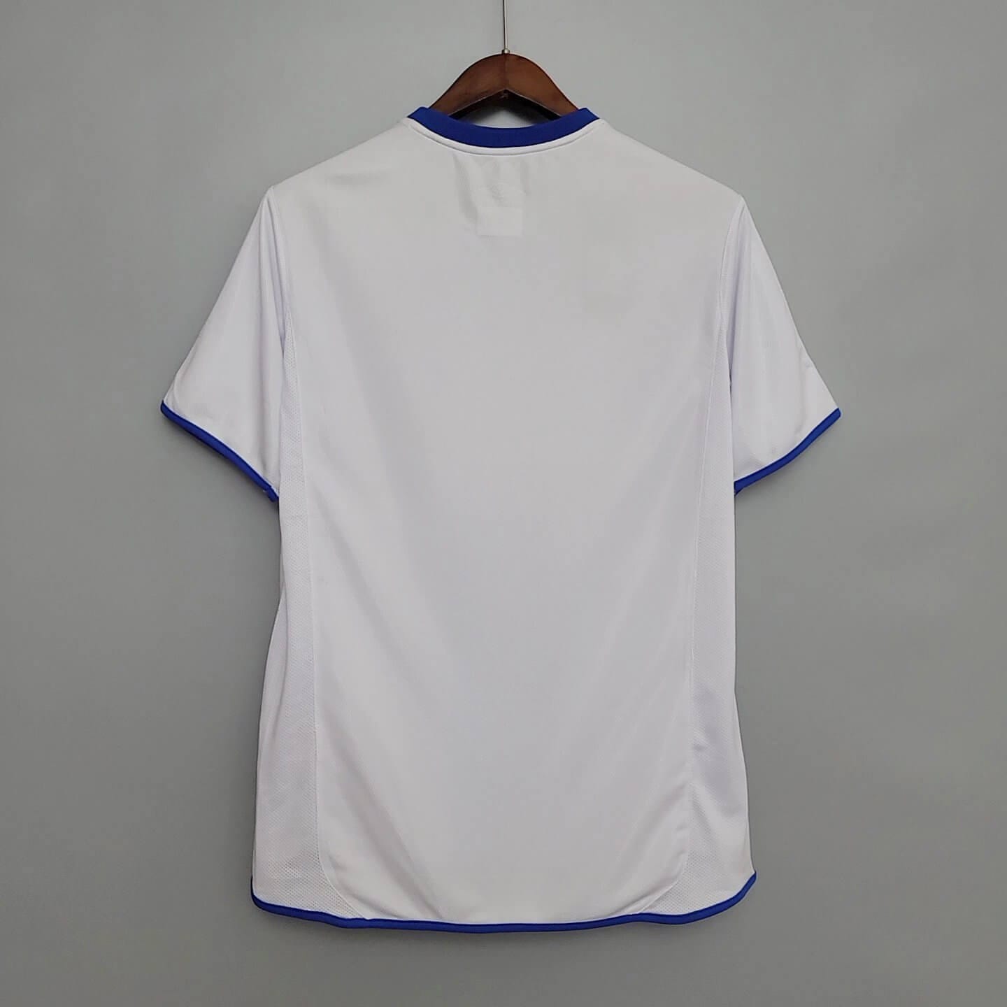 Designed by Umbro, the shirt features a crisp white base with a bold vertical blue and navy central stripe, framed by clean blue trim on the collar and sleeves. The Fly Emirates sponsor and minimalistic design give it a sleek, continental feel that perfectly matched Chelsea’s evolution into European heavyweights. This kit was worn by the likes of Frank Lampard, John Terry, Claude Makélélé, Didier Drogba and Joe Cole, and featured during key away performances across the Premier League and Champions League campaigns. Whether you remember Mourinho’s arrival, Lampard’s rise to midfield stardom, or the club's first title in 50 years, this shirt captures the sleek confidence of Chelsea’s new era.